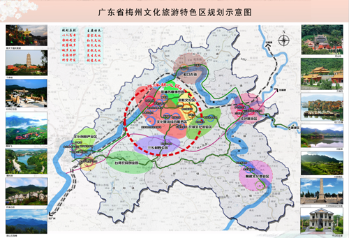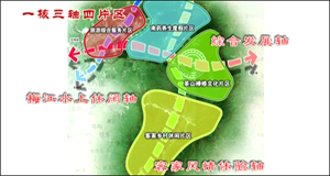 三轴:客家风情体验轴、综合发展轴和梅江水上休闲轴